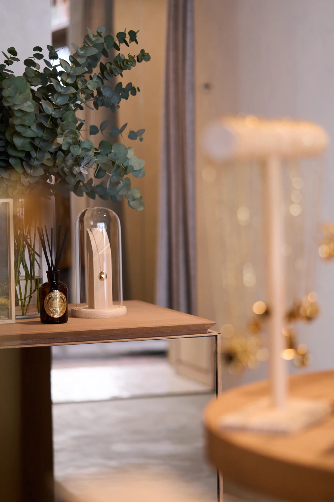 Custom-designed fittings highlight the brand’s feminine personality, seamlessly blending functionality with form to create a distinctive retail experience.